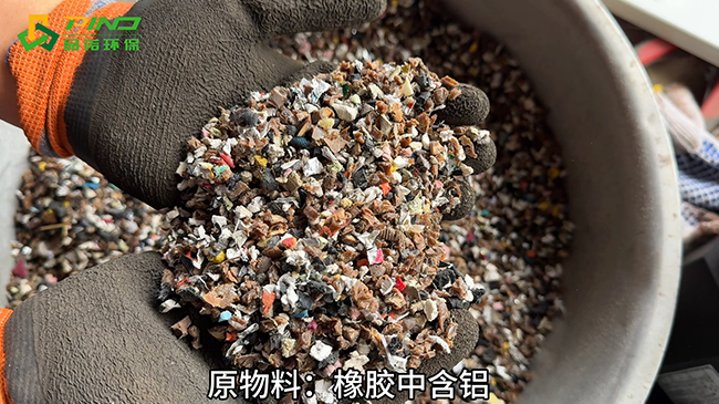 旧橡胶中往往夹杂着铜、铝等有色金属杂质,这些杂质不仅会影响再生橡胶的品质,同时筛选出来的铝还能回收利用。传统除杂方法效率低下、分选精度有限,难以满足规模化回收利用的需求。为破解这一痛点,品诺环保依托多年环保设备研发经验,针对性开展技术攻关,最终选定有色金属涡电流分选机作为核心设备,开展此次除杂实验。