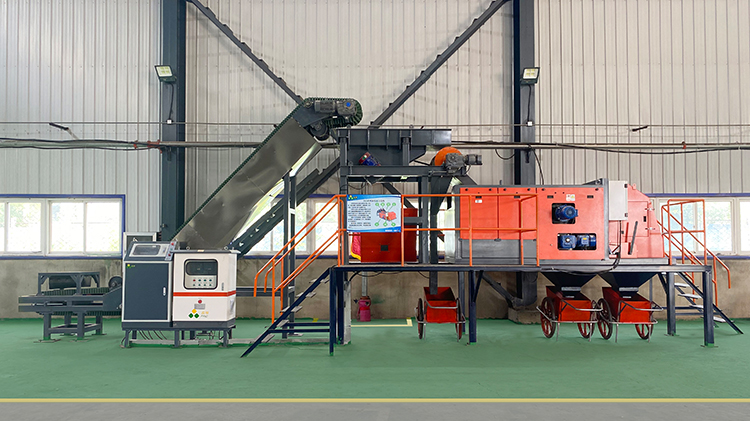 现场可见,原本混杂无序的花盒破碎料,经过涡电流分选机的处理后,金属与塑料实现了精准分离,分离后的金属杂质纯度高,可直接进入再生利用环节,塑料破碎料也可进一步加工回收,真正实现了“变废为宝”。